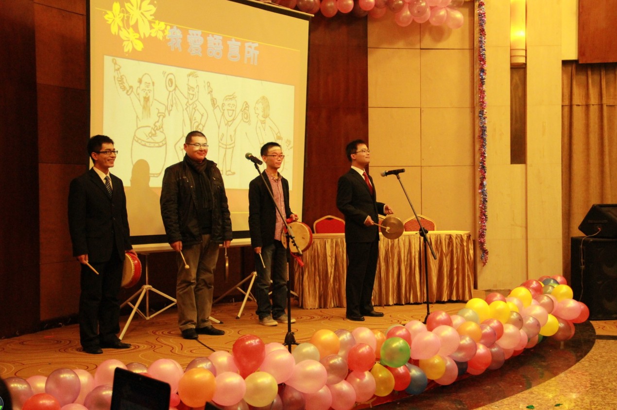 2013年12月26日晚,语言研究所全体师生在桂苑宾馆举行一年一度的团圆晚宴,并于晚宴后举办了2014年元旦联欢会。著名语言学家、语言所名誉所长邢福义老师、语言所所长汪国胜老师及语言所其他专兼职导师出席了联欢会。
