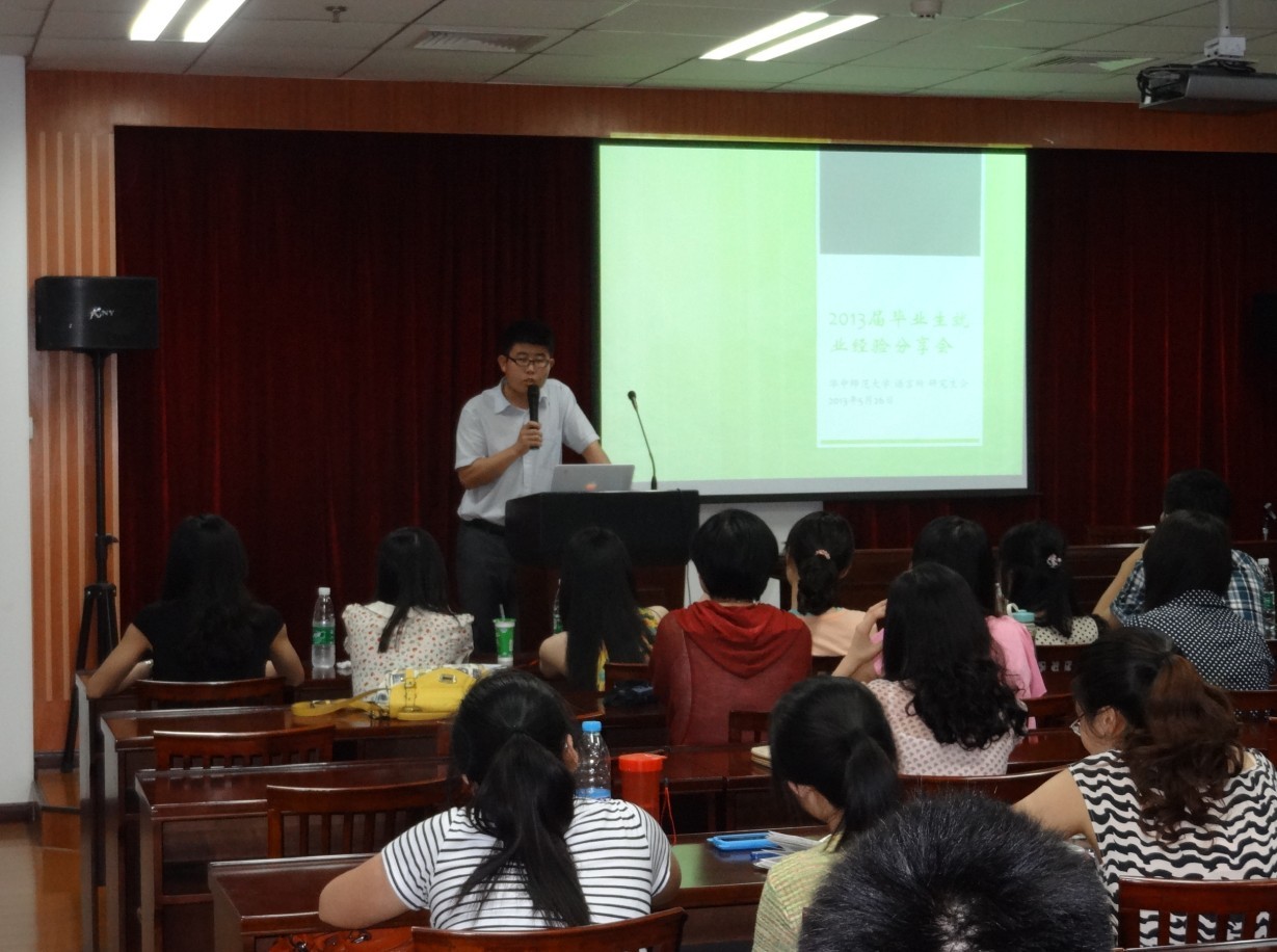 本次活动旨在发挥优秀毕业生的先锋模范作用,为在校学生提供就业和继续发展的建议,引导其学会正确地自我定位,树立明确的人生目标。本次活动邀请到了去年毕业并考取公务员的牛现东;成功应聘江汉大学辅导员的肖兆;顺利考取语言所语言学博士的王赛珈,考取浙江大学语言学博士的陈衡;签约学校的杨婷婷、肖皿舟、周芳明。