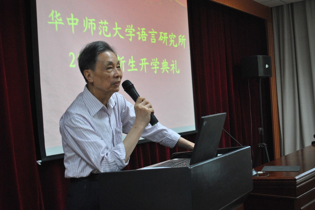 开学典礼由中心主任汪国胜教授主持。中心名誉主任邢福义教授首先讲话,邢教授围绕研究生如何做研究的话题,以大量鲜活的语言现象为例,向大家强调了语言研究中悟性、韧性、独立性和客观性这“四性”的重要性。邢教授指出,语言学研究的成果,要看得懂、信得过、用得上。他还阐释了语言所所训“抬头是山、路在脚下”的深刻内涵。