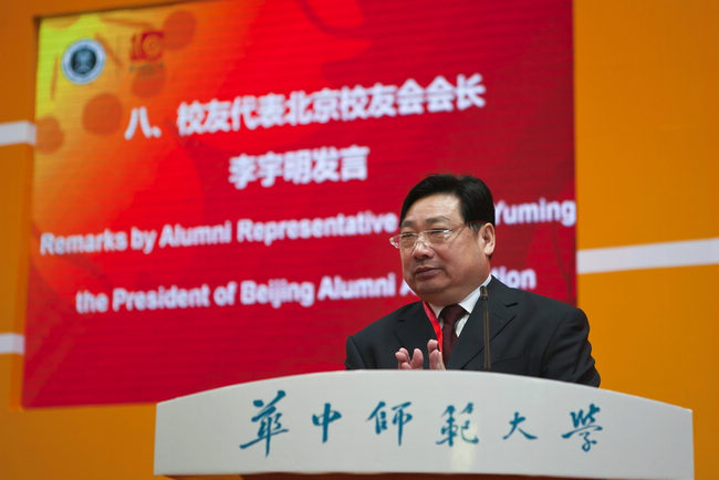 10月2日上午和晚上,李宇明先生、屈哨兵先生出席了华中师范大学建校110周年庆典大会和校庆晚会。在庆典大会上,我校北京校友会会长李明宇先生作为校友代表发言。他说,在我们校友心目当中,华中师大一直是我们心灵的殿堂,是我们精神的家园;作为校友,我们一定不忘母校的教诲,在各自的岗位上立德,立功,立言。10月2日下午,李宇明先生还参加了“中国梦•华师情”博雅校友论坛,并就“中国的大学离大学还有多远”、“大学应该培养什么样的大学生”等话题发表了自己的看法。