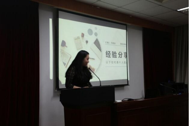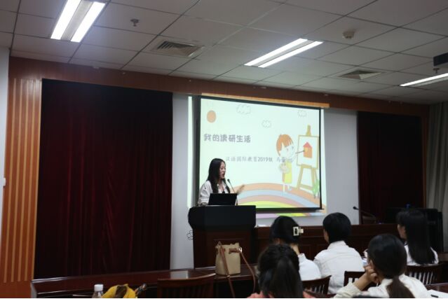 最后一位上台交流的是2019级学硕的鲁家文学姐,她主要分享了汉办志愿者选拔考试的经验。学姐从如何选择院校、如何准备考试开始介绍,为大家讲解了许多笔试和面试的题型与答题技巧,她还分享了自己上课时出现过的突发状况及应对方式,给同学们传授了许多宝贵经验。