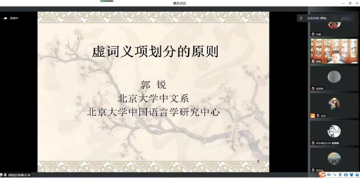 2022年9月27日下午,北京大学郭锐教授应教育部第三批“全国党建工作样板支部”培育创建单位华中师范大学文学院语言学教工党支部的邀请,做了题为《虚词义项划分的原则》的学术讲座。根据防疫要求,讲座采用线上的方式举行,由支部书记张邱林教授主持。来自文学院、语言所的70余名师生参加了此次学术讲座。