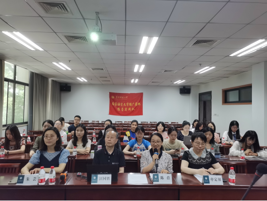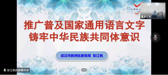 开班仪式结束后,国家级普通话水平测试员、武汉市新洲区教育局语委办副主任彭江帆以“国家语言文字政策解读”主题对参训学员开展了首次大课培训,她从提高认识“清晰度”,知晓语言文字政策法规和掌握应用“规范度”,学习语言文字规范标准等方面深入解读了国家语言文字政策,强调语言文字是凝聚文化自信的重要力量。