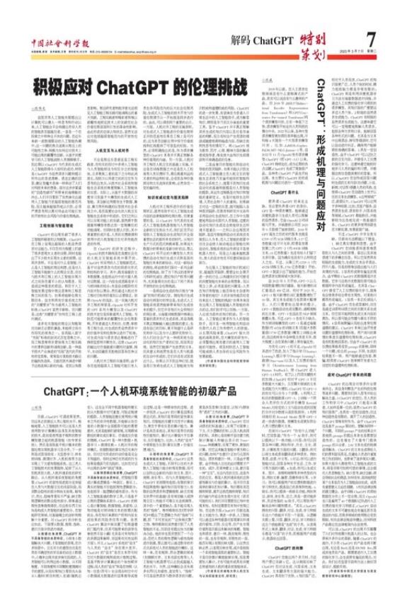 ChatGPT的出现会对很多行业带来冲击,其自身利弊及产生的科技伦理等诸多问题,需要我们深入思考并给出解决之道。1.ChatGPT的定位。在人类的工作和学习中,ChatGPT只能是从属者,人始终是第一位的。虽然ChatGPT的知识面很广,也具有一定的创造性,但这种创造性是有限的。离开了人的创造性,ChatGPT很难有所作为。由于ChatGPT还是基于prompt驱动的,要解决同样一个问题,不同的prompt产生的结果会天差地别,prompt的提出本身也是需要创造性的。这也催生了大量专门提供prompt的从业者。2.AI文本生成的检测亟须解决。ChatGPT的文本生成带给人们的便利显而易见,在避免人类进行重复性工作的同时,也带来了诸多现实问题。如果大部分人都使用人工智能生成的文本,将是非常可怕和可悲的事情,这会弱化人类思维能力。缺少思考、缺乏创新,将会导致社会的倒退。如何有效、高效地判定某个文本是否为人工智能自动生成,或具有重要意义且迫在眉睫。3.相关法律法规的建立健全。由于训练ChatGPT的原始数据在分布上不一定合理,而且OpenAI也只是雇用了40个数据标记员进行人工反馈的强化学习和修正,ChatGPT自动生成的文本不可避免地会有偏见甚至是违法的内容,在很多领域的使用理应受到限制。相关法律法规亟待健全,任何科技产品都应在法律框架内合法使用。
