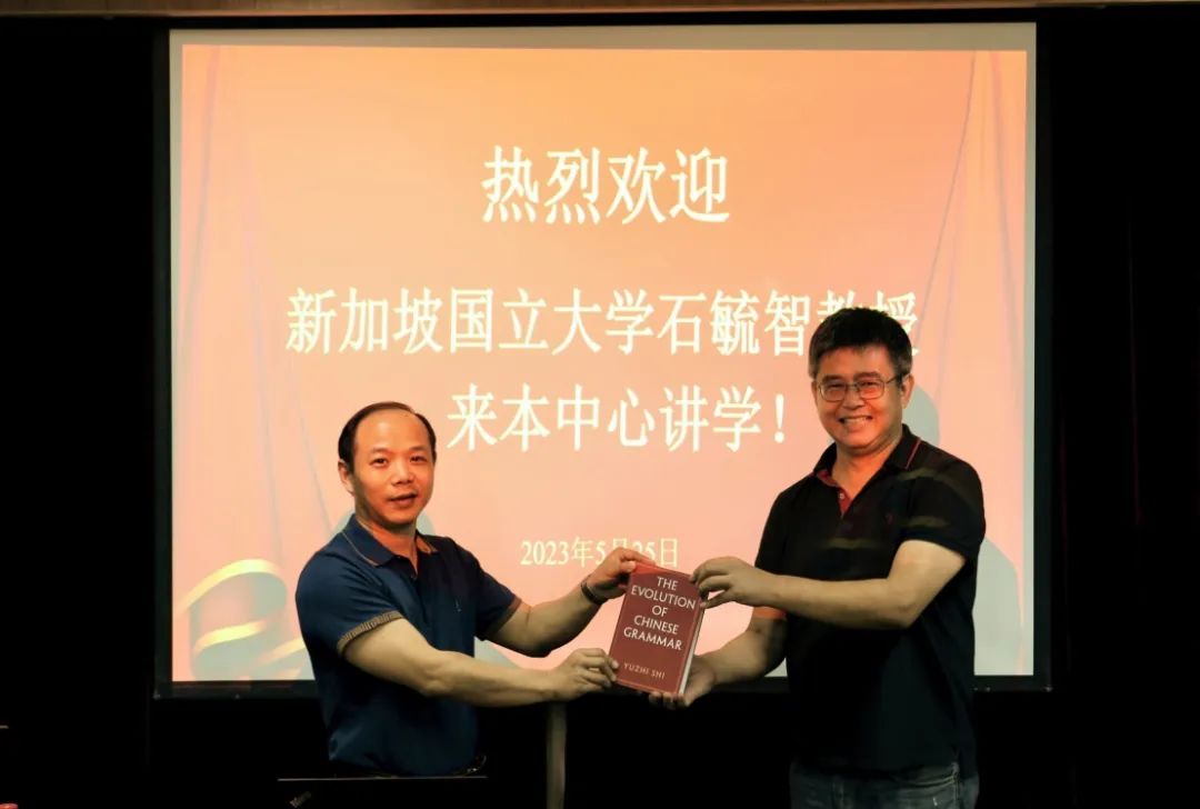2023年5月25日上午,新加坡国立大学中文系石毓智教授应本中心邀请,为师生们做了一场题为《语法构式之间的同化与异化》的学术报告。报告由中心副主任匡鹏飞教授主持,现场座无虚席。
