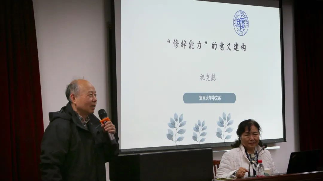 汪国胜教授首先简要介绍了祝克懿教授的研究方向及学术成就。祝教授是语言学核心期刊《当代修辞学》主编,同时兼任中国修辞学会副会长、上海市语文学会常务理事、陈望道研究会副会长,主要研究领域为修辞学、语体学、语言风格学及语篇语言学。