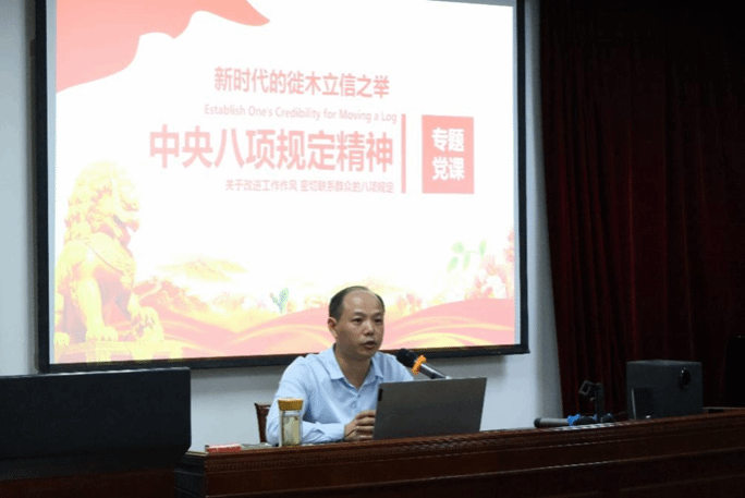 党课伊始,匡鹏飞以“徙木立信”的历史典故为切入点,指出商鞅变法中“徙木立信”之举树立了政令公信力,而新时代党中央以“踏石留印、抓铁有痕”的政治决心狠抓作风建设,彰显了全面从严治党永远在路上、党的作风建设永远在路上、党的自我革命永远在路上的战略定力。