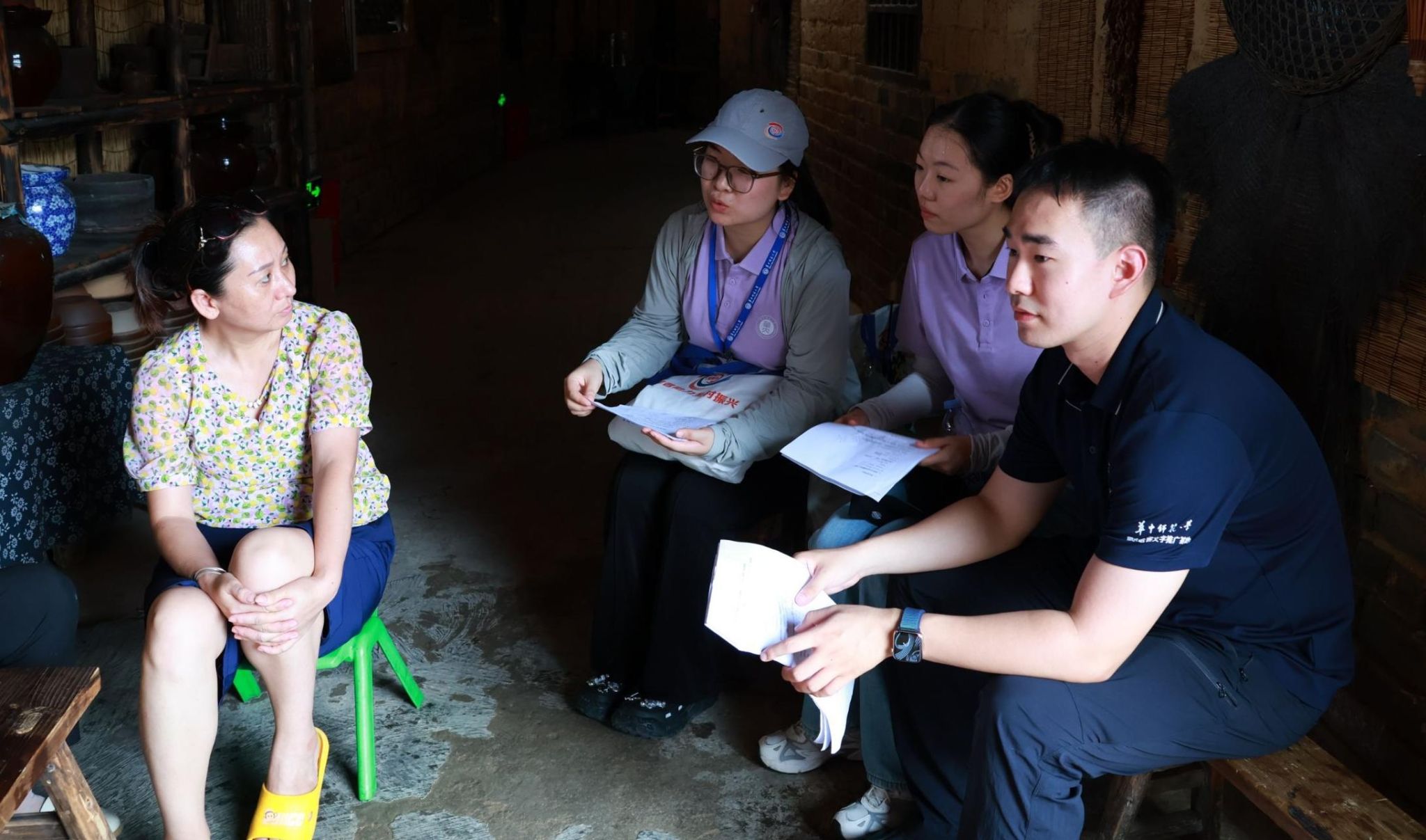 在带队老师王毅的指导下,调研组队员深入湾里村,围绕村民语言使用情况开展入户调研。调研学生分组对十余户村民进行走访,了解村民日常交流用语、普通话掌握程度及使用场景、对当地语言和普通话的态度等,为掌握湾里村语言使用现状并推动后续推普工作顺利进行提供了坚实支撑。