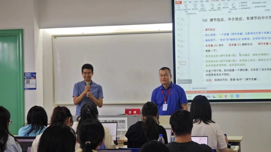 2025年7月31日上午,沈威副教授为暑期学院的学员做了一场题为“语言研究中的统计方法”的讲座。线下有近百人参加,线上(b站及腾讯会议)有2300多人收看了直播。