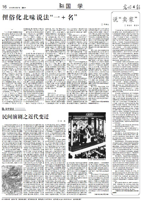 第三,“一+名”并非都是新潮北味说法。有的一直以来都在使用,属于原有说法,比如“一人”。此外,还有多种情况。举例说:可以是习用性表述。比如,剧本中人物对话之间通过括号插入了“一士兵上”。也可以是文言色彩较重的话语。如:“妾一妇人,少更世事。”(姚雪垠《李自成》)还可以是诗句形式的话语。如:万马军中一小丫,颜似露润月季花。(曲波《林海雪原》)