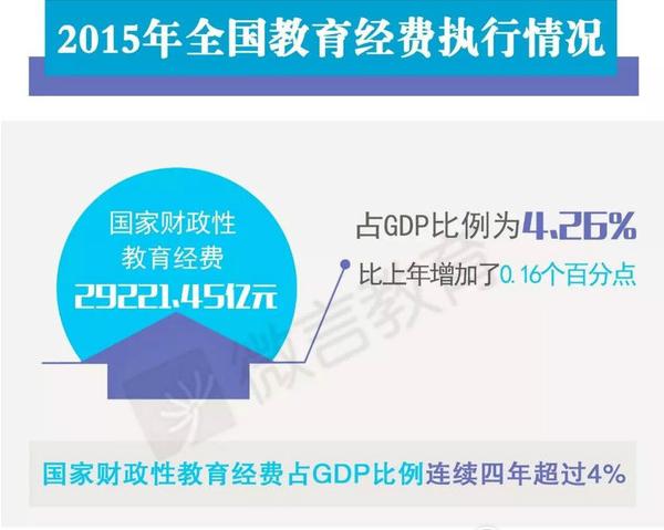 据统计,2015年全国国内生产总值为685505.8亿元,国家财政性教育经费占国内生产总值比例为4.26%,比上年的4.10%*增加了0.16个百分点。