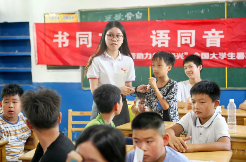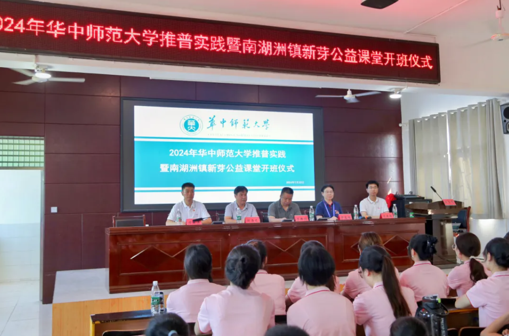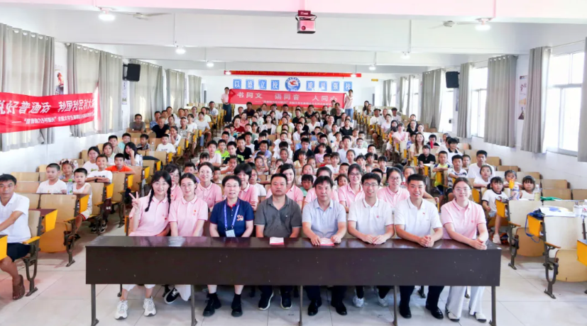 2024年7月21日-27日,国家语言文字推广基地(华中师范大学)师生推普实践队赴湖南省岳阳市湘阴县南湖洲镇开展了为期一周的“推普助力乡村振兴”暑期社会实践志愿服务活动。实践队共17名师生,由我校教师教育学院、校语委办教师、国家级普通话测试员申定羽副教授和语言研究所教师肖辛格博士带队,特邀湖北科技学院国家级普通话测试员孙和平教授作为指导专家,队员由语言研究所14名研究生组成。本次实践活动旨在加大国家通用语言文字推广力度,助力教育强国、文化强国建设,引导学生为中国式现代化贡献青春力量,服务立德树人根本任务,繁荣发展乡村语言文化。