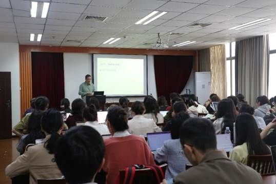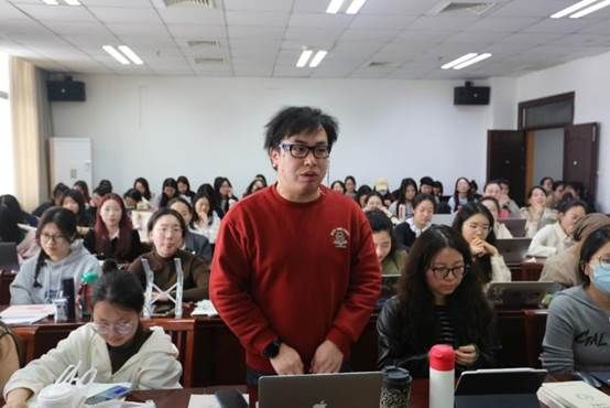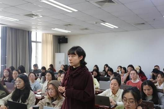 最后,陶教授立足互动语言学的研究视角,指出未来汉语功能语言学的发展展望,共分为四个方面:一是基于互动视角重新描写和解释某种特定的语言形式;二是开展交际行为的形式化研究,比如汉语会话中的评价序列构建;三是深化机构性话语研究,聚焦课堂、法庭、医患等场景的互动特征;四是在推动语言学与人工智能的交叉融合,在智能对话系统中植入日常交际策略。这些前瞻性观点引发与会师生热烈讨论,本中心博士生就“权势关系对互动模式的制约”“留学生课堂语料标注方法”等问题向陶教授请教,陶教授一一作了细致解答。