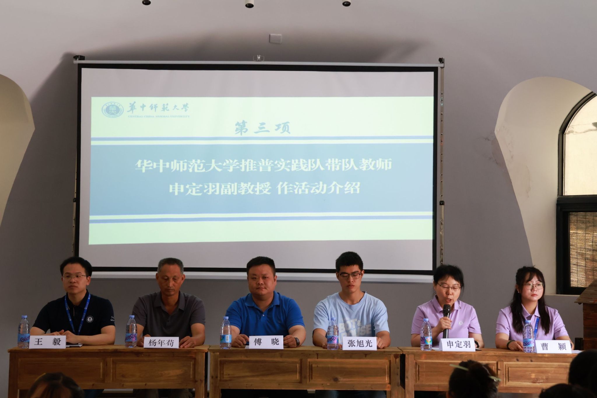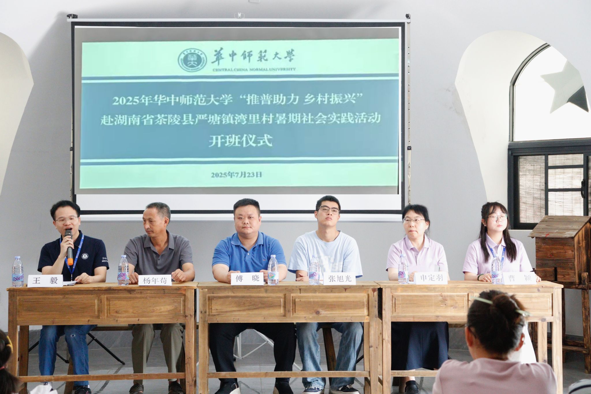 为扎实推进推普攻坚行动,助力乡村全面振兴,7月23日,国家语言文字推广基地(华中师范大学)“推普助力乡村振兴”2025 年暑期社会实践活动开班仪式在湖南省株洲市茶陵县严塘镇湾里红军村举行。共青团茶陵县委书记傅晓、严塘镇党建办干部张旭光、湾里村党总支副书记杨年苟,实践队指导教师申定羽及70余名严塘镇中小学生、家长共同参与。活动由华中师范大学语言研究所教师王毅主持。