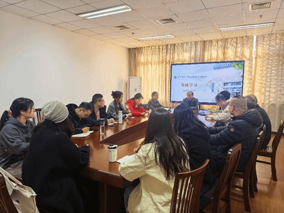 2025年11月19日下午,本中心在会议室召开专题学习会,学习贯彻党的二十届四中全会精神、介绍《中共中央关于制定国民经济和社会发展第十五个五年规划的建议》(以下简称《建议》)、讨论中心“十五五”发展规划草案等。会议由中心主任匡鹏飞教授主持,中心全体教职人员参加了会议。