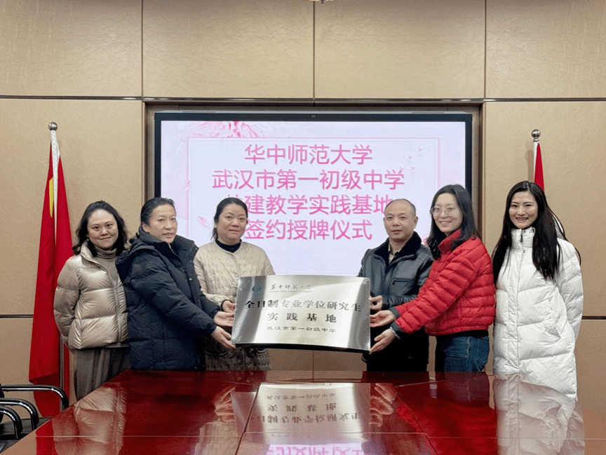 2025 年 12 月 23 日上午,华中师范大学语言与语言教育研究中心主任匡鹏飞教授、辅导员朱芸一行赴武汉市第一初级中学金雅校区,与该校正式签署共建全日制专业学位研究生实践基地协议,并举行授牌仪式。此次合作是继双方此前座谈交流、达成长期合作共识后的重要落地举措,标志着校际协同育人机制迈入新阶段。