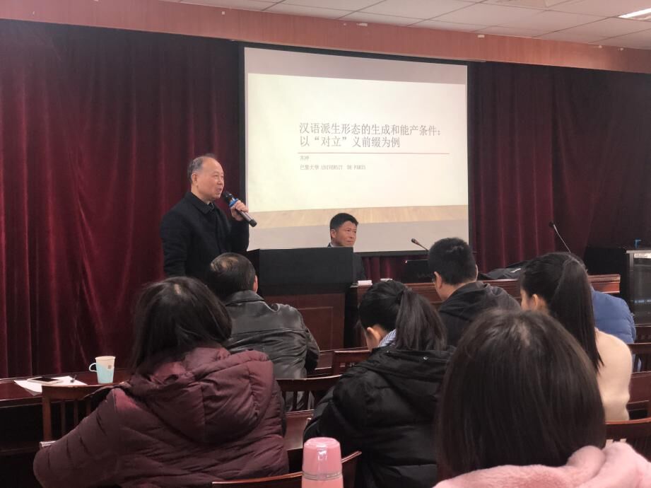 2019年12月27日上午,法国巴黎大学东亚语文学院副教授、博士生导师,巴黎大学孔子学院外方院长齐冲先生应邀到本中心讲学,讲座主题是“汉语派生形态的生成和能产条件:以‘对立’义前缀为例”。中心部分研究人员及博士、硕士生参加了讲座,讲座由中心主任汪国胜教授主持。
