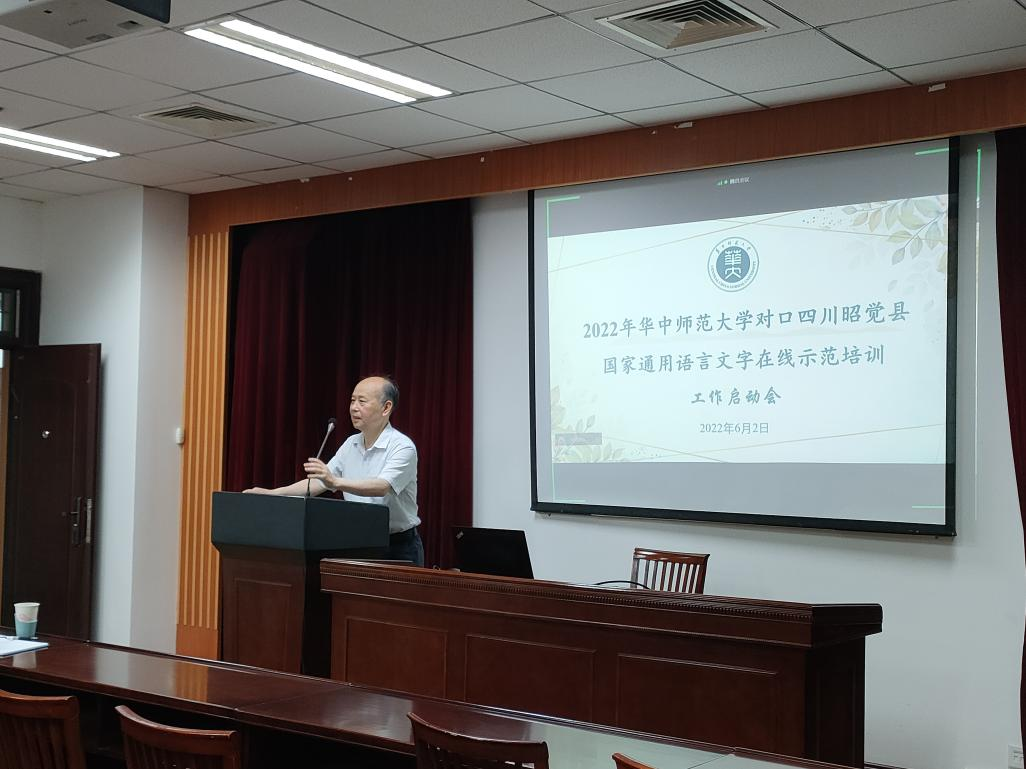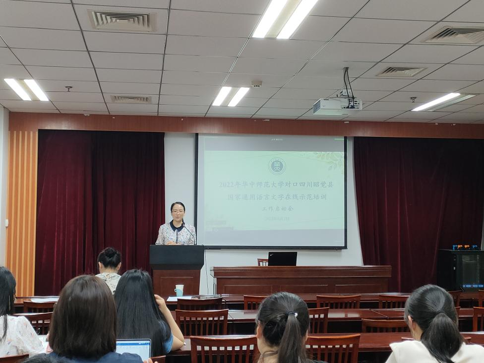 • 当代师范生讯(记者:姜阳 邱悦)6月2日下午,我校对口凉山昭觉县"教师国家通用语言文字能力提升在线示范培训"志愿者工作启动会于语言研究所报告厅举行,语言研究所辅导员朱芸主持会议,华中师范大学国家语言文字推广基地负责人、语言研究所所长汪国胜,国家级普通话测试员、教师教育学院副教授申定羽,国家级普通话测试员、文学院硕士生导师陈蓓及25位学生志愿者参会。
