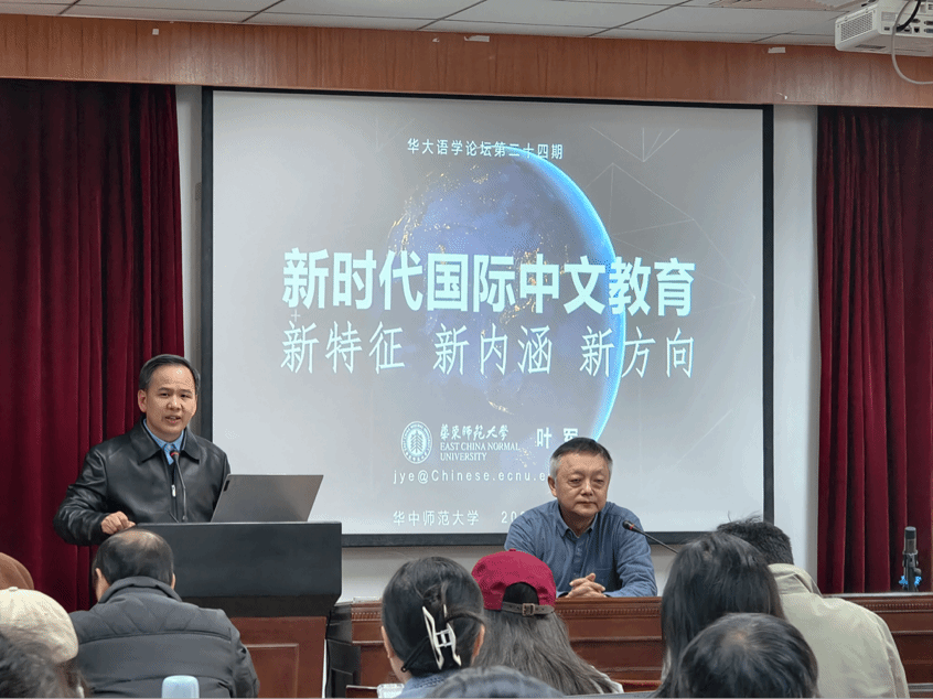 叶军教授的讲座围绕“新时代的国际中文教育”这一核心议题展开深入讨论。他指出,“国际中文”具有世界性语言属性,有别于传统的区域性汉语概念;而“中文教育”则涵盖国家通用语言文字教育(国内)与中文作为第二语言/外语教育(海外),是一种兼具文化传承与传播功能的教育活动,中文国际化已成为必然趋势。