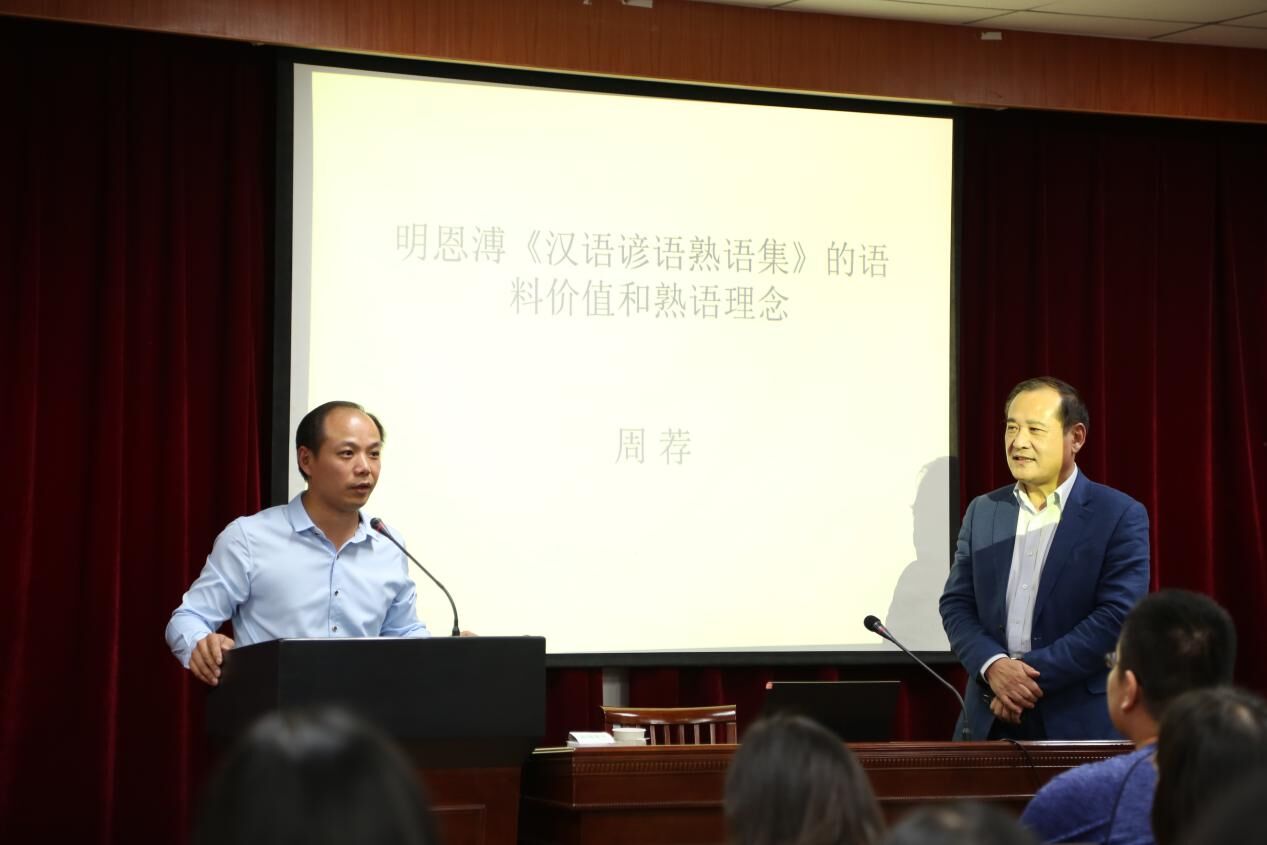 最后,匡鹏飞教授对本次学术讲座进行总结,他高度评价了周荐教授的精彩报告和独特的研究视角,指出我们在做研究时要注意以下三点:一是要处理好材料和理论的关系,二是既要关注本土的汉语研究也要关注域外的汉语研究,三是要重视语言文化现象中“雅”和“俗”的辩证关系,对类似的现象做更多的思考和研究。