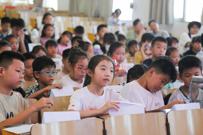 申定羽以“以爱之名,赴一场盛夏之约”为主题,介绍了“推普助力乡村振兴”活动的意义、实践队的组成情况以及课程安排,寄语实践队队员要展现才华,分享热情,表达爱、传递爱、延续爱。实践队队长李晨惠代表全体队员作出“传授知识、传递文化、共同成长”的承诺。她表示,在前期准备中,队员充分结合了南湖洲镇独特的文化资源和语言环境、充分考虑普通话教学的特点,设计出一系列既符合学生学情又富有创新性的教学活动,引导同学们向着有知识、有能力、有担当的新时代少年努力。
