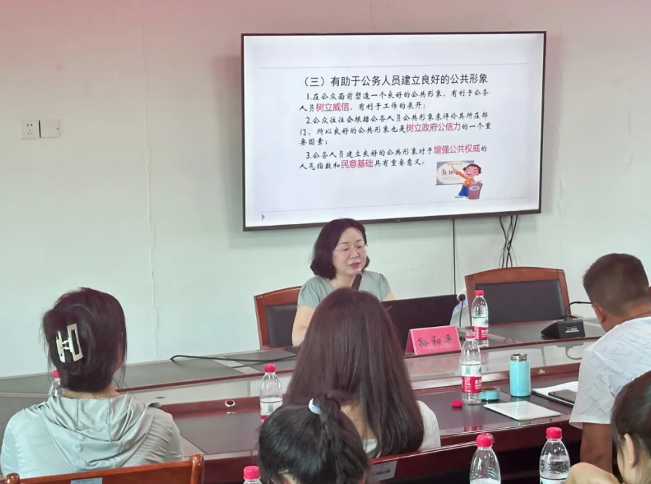 孙和平教授应邀为当地30余位青年公职人员、村(社区)干部、乡村教师进行了普通话水平和礼仪规范水平培训,帮助南湖洲镇的公职人员提升普通话水平,增强形象管理意识及礼仪规范水平。
