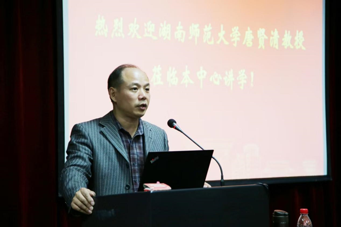 匡主任首先对唐贤清教授莅临中心讲学表示热烈欢迎,并对唐教授长期以来对本中心的支持表示感谢,然后介绍了唐教授的研究领域、学术成就等情况,让在场的同学们真切感受到了唐教授的风采与魅力。