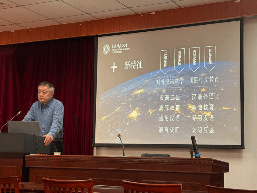 叶军教授的讲座围绕“新时代的国际中文教育”这一核心议题展开深入讨论。他指出,“国际中文”具有世界性语言属性,有别于传统的区域性汉语概念;而“中文教育”则涵盖国家通用语言文字教育(国内)与中文作为第二语言/外语教育(海外),是一种兼具文化传承与传播功能的教育活动,中文国际化已成为必然趋势。