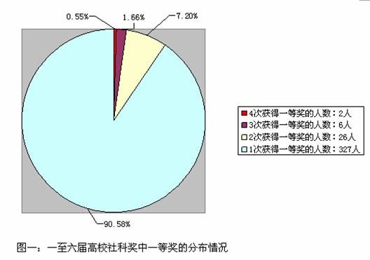 一至六届高校社科奖中一等奖的分布情况如图一所示: