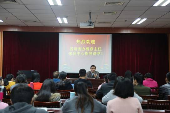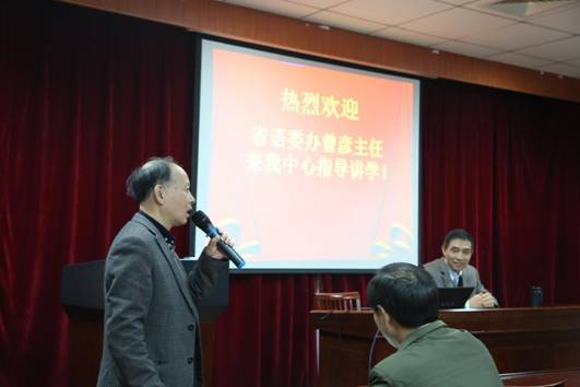 11月8日下午,湖北省语委办曾彦主任莅临我中心进行指导讲学,以“语言文字工作的概况”为主题,给本中心师生带来了一场精彩的演讲。本场报告由中心主任汪国胜教授主持,中心其他研究人员和全体博士、硕士生参加了讲座。