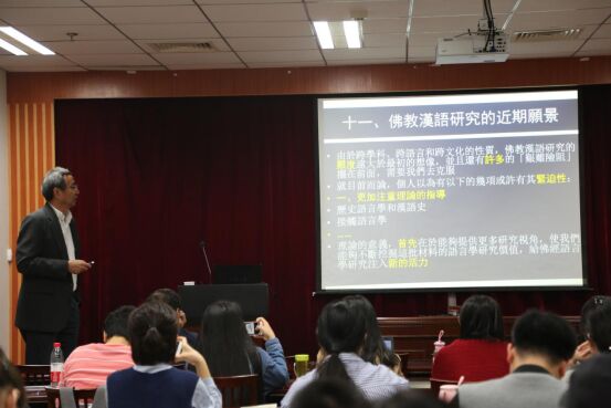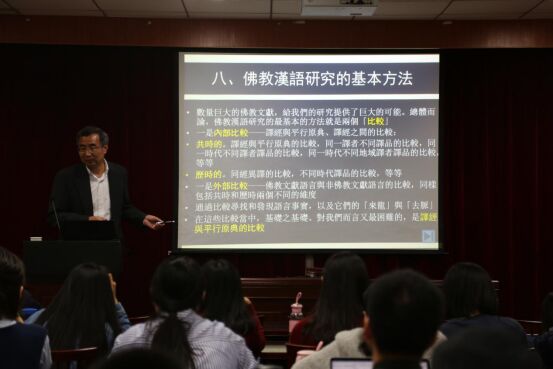 朱教授的讲学从汉文佛典的汉语史研究、佛教汉语及其研究、汉译佛经语言的性质和特点、佛教汉语研究的理论依据、主要任务及基本方法、译经与平行原典比较的可行性、佛教汉语的研究成果和近期愿景等多方面展开,细致且生动,全面深入地向大家介绍了佛教汉语研究的各个方面。