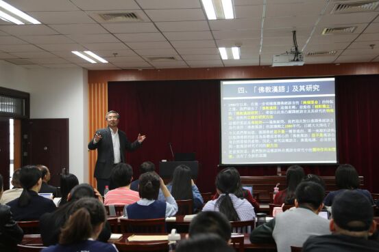 2018年4月24日上午,香港教育大学朱庆之教授应邀来本中心讲学,在学术报告厅做了一场题为《佛教汉语研究的理论与方法、成果与前瞻》的学术讲座。讲座由中心主任汪国胜教授主持,本中心全体研究人员及博士、硕士参加了讲座。