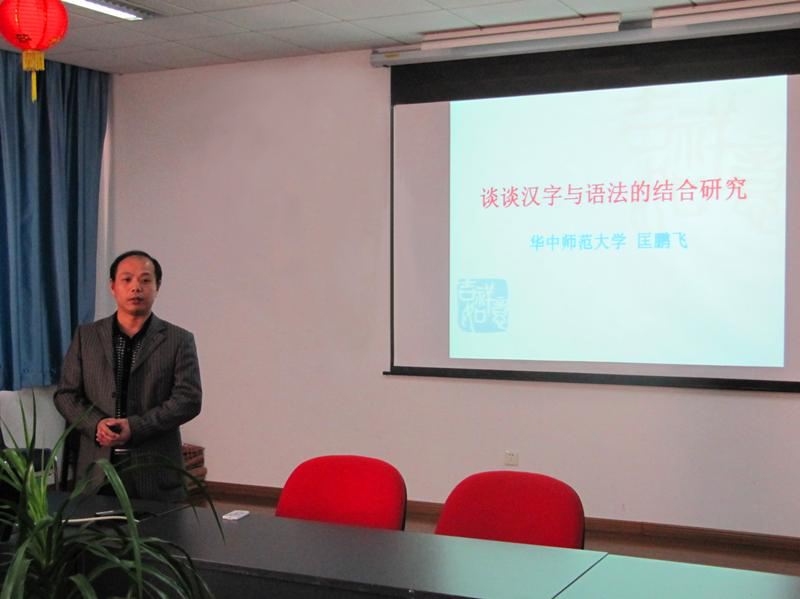 11月23日,匡教授在南京审计大学文学院进行学术交流,为该院语言专业教师作了一场题为《谈谈汉字与语法的结合研究》的学术报告。报告由文学院院长刘顺教授主持。匡教授通过大量实例,介绍了如何利用语法知识研究古汉字以及从古汉字中发掘其包含的语法信息,从而揭示了汉字与语法之间较为隐蔽的联系。