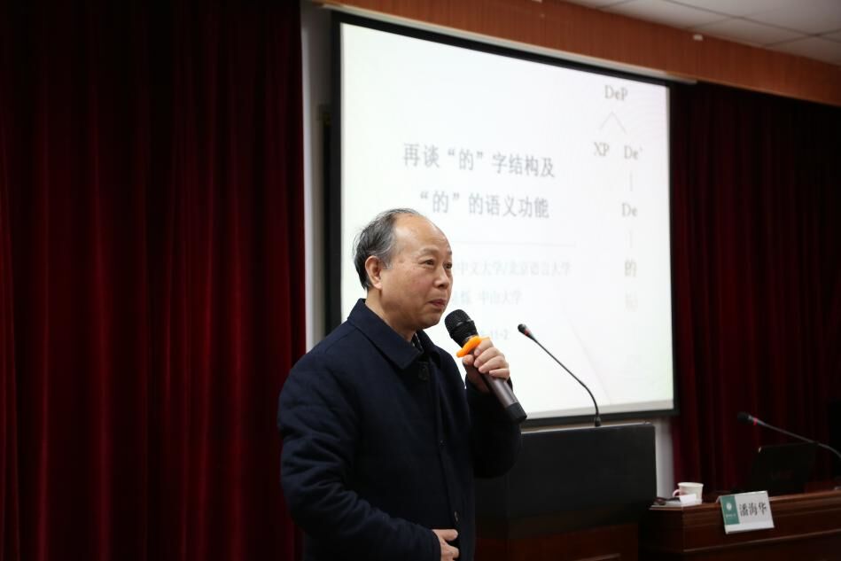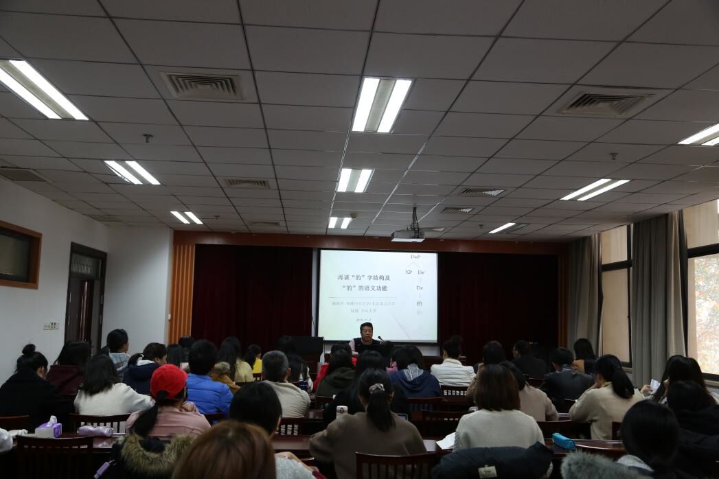 2019年12月13日上午,香港中文大学语言学及现代语言系系主任、博士生导师潘海华教授应邀到本中心讲学,讲座主题是“再谈‘的’字结构及‘的’的语义功能”。中心部分研究人员及博士生、硕士生参加了讲座,讲座由中心主任汪国胜教授主持。