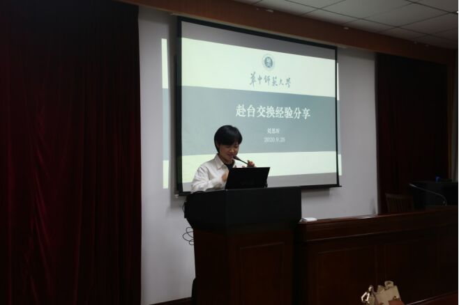 第三位分享的是2018级学硕的刘思圻学姐。她主要分享了自己赴台交换的经验与心得。学姐详细地讲解了关于交换生择校、申请、笔试和面试等方面的问题,干货满满。还特别指出,要尽早明确自己的学习目标和学习计划,端正学习态度。此外,学姐还谈到了城市的人文关怀,开拓了大家的视野,使大家受益匪浅。