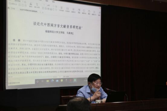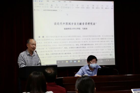 2021年5月11日晚,福建师范大学文学院二级教授、博士生导师,原国务院学位委员会中国语言文学学科评议组成员马重奇先生应邀来本中心,作了一场题为《谈近代中西闽方言文献音系研究法》的学术讲座。讲座由中心主任汪国胜教授主持,中心部分研究人员及博士、硕士生聆听了此次讲座。