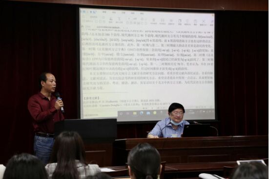 讲座中,马重奇教授结合自身多年来丰富的研究经验和研究成果,梳理总结了近代中西闽方言文献音系研究的四种主要方法,并用大量文献资料和方言材料为证。第一种是文献内部比证法,他介绍了著名音韵学家李荣先生在《渡江书十五音》序中提出的从文献“内部寻找证据”和“寻找特殊韵部”的两种方法,并受启发对另外两本韵书《汇集雅俗通十五音》和《增补汇音》的音系进行了排除法的认定。第二种是文献音系归纳法,马先生例证阐述了如何根据文本体例来设计表格,归纳声韵调系统,归纳与考证文白异读系统和“本韵”“变韵”等情况。第三种是中西文闽方言文献对读法。马先生阅读了大量西方传教士编写的西文闽方言文献,从声母、韵母、声调三个方面进行构拟,对中西文闽方言同期同音系、中西文闽方言不同期同音系和西文闽方言同地区不同音系分别进行对读。第四种是历史比较法,对近代中西文闽方言文献进行共时比较和历时比较。通过比较,马先生发现闽方言内部各地区在一百年间的发展演变是不平衡的,闽北方言变化最快,闽南方言变化最慢,但台湾地区的闽南语变化较快,这与历史变迁、经济和社会的发展、人口流动等有很大关系。最后,马重奇教授重点强调了严谨求证、挖掘新材料的重要性,同时还强调对于传教士编写的材料,我们应注意辨别,吸取精华,提取有价值的材料为己所用。