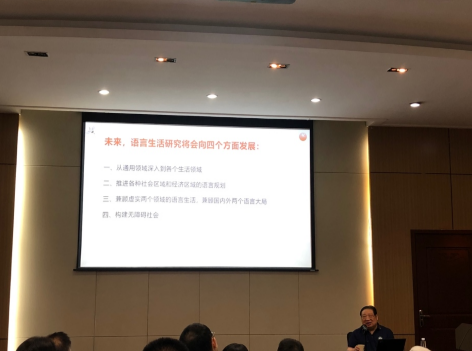 三是探讨中国语言生活研究的未来走向。他指出,未来的语言生活将会面向四个方面发展:第一,从通用领域深入到各个生活领域;第二,推进各种社会区域和经济区域的语言规划;第三,兼顾虚实两个领域的语言生活,兼顾国内外两个语言大局;第四,构建无障碍社会。李教授的学术视野宏大,学术思想高屋建瓴,为今后的语言生活研究提前指明了道路。