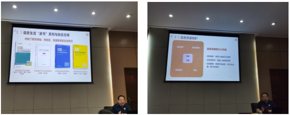 一是介绍中国语言生活研究的“九大实践”。具体包括:1.语言生活监测;2.语言生活“皮书”系列与杂志方阵;3.语言资源保护;4.语言扶贫;5.语言经济;6.语言服务;7.海峡两岸语言沟通;8.大华语;9.语言外交。李教授对每一种实践都做了有趣的讲述,详略得当、引人入胜。他还特别强调了华中师范大学文学院、语言所和计算机学院在语言生活、语言资源保护、语言扶贫、语言服务、大华语研究等实践中起到的重要作用和贡献;为华师人在武汉抗疫工作中提供的应急语言服务点赞。