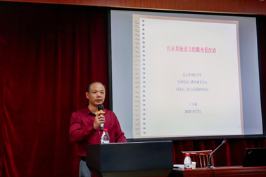 最后,中心副主任匡鹏飞教授作总结。他指出,王教授的讲座内容丰富、立意高远,对我们的汉语研究极具启发性,是一场精彩的学术盛宴。王教授不仅从其他语言的视角来看汉语的特点,还从语言之外看语言,既对语言现象有深入细致的观察,还能从语言之间的差异性、语言背后的其他现象来分析语言,帮助我们开阔了视野,也给我们提出了很多值得思考和研究的问题。本次讲座在师生们热烈的掌声中圆满结束。