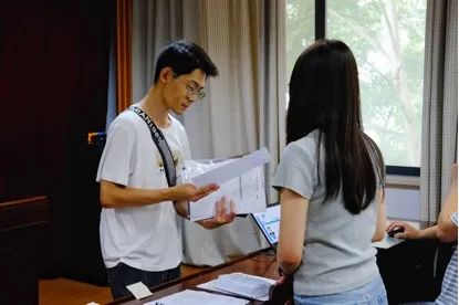 8点整,报到工作正式拉开帷幕,按照材料审核、网上报到、材料收取和资料发放四个环节有序进行。新同学们在工作人员的耐心指引下依次核对个人信息,完成党团关系转移、个人材料档案提交以及新生资料领取等事项。对于材料缺失的同学,辅导员朱芸给予及时指导并做好相关记录,整场迎新工作开展得有条不紊。