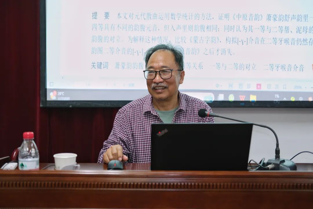 11月3日下午,中国社会科学院语言研究所研究员、全国方言学会学术委员会主任、《方言》杂志原主编、江苏师范大学特聘教授麦耘先生应本中心邀请,为师生们作了一场题为《<中原音韵>萧豪韵的构拟》的学术讲座。讲座由中心主任汪国胜教授主持,共30余名师生参与。