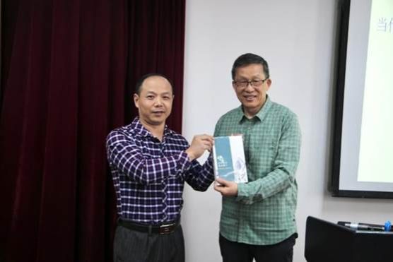 讲座开始前,匡鹏飞教授详细介绍了陶红印教授的研究兴趣与学术成果,回顾其与华中师大语言研究所的长期合作渊源,特别提及陶教授为纪念邢福义先生撰写的文章已收录于《抬头是山 路在脚下——邢福义先生纪念文集》。匡教授现场向陶教授赠送该书并合影留念,对其多年来给予语言所的学术支持致以诚挚谢意。