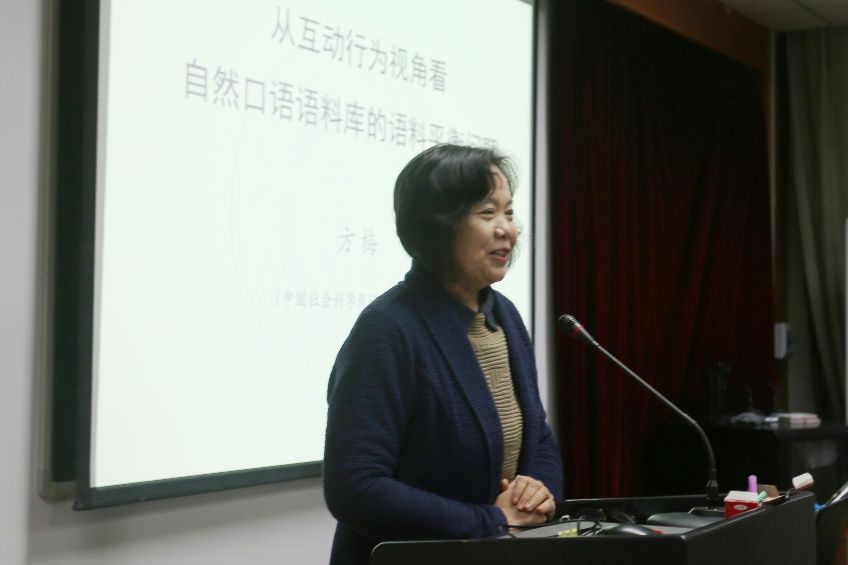 20日下午,方梅教授做了题为《从互动行为视角看自然口语语料库的语料平衡问题》的讲座。方教授介绍了平衡语料库的核心定义、主要特征与设计原则,重点分析了自然口语对话典型材料的四个特征:编码方式高度依赖互动对话;解读过程高度依赖活动类型;同类功能因互动程度不同而产生编码方式差异;能够体现自然言谈中的复合行为。并结合丰富的实例进行了深入阐释。方教授指出,建设平衡自然口语语料库,必须充分考虑口语的交际属性,以互动性和活动类型为轴,照顾到互动性等级、活动类型、交际行为类型等方面的差异。唯有如此,才能充分反映口语的实际特点和整体面貌。