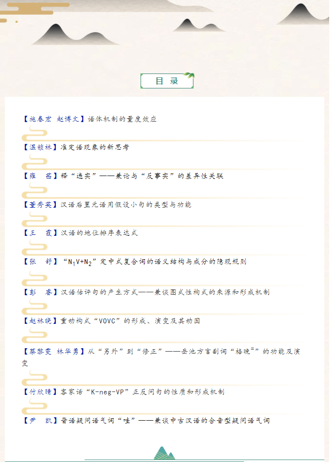 提 要 准定语现象在语法学界讨论已久。文章选取了早期不同理论方法下的代表性成果作为参照点,客观总结了已有成就与存在的争议点。在全面描写准定语类别的基础上,重点关注了准定语在句中不同位置的诸多不对称现象,特别是准定语与离合词现象的高度关联性,根据单一信息原则,解释了这些现象的成因。句子信息结构安排是促成句法结构重组的语用推力:话题的指称化诱发了该位置主谓结构的准定语结构操作,评述语的事件化与焦点化迫使及物性低的双音词拆分以容纳事件化与焦点化所需要素,并直接导致了词的离析与准定语、准名词现象的产生。走向话语与语用现场,准定语、离合词及准名词等其实都并不是什么奇异的语法现象。