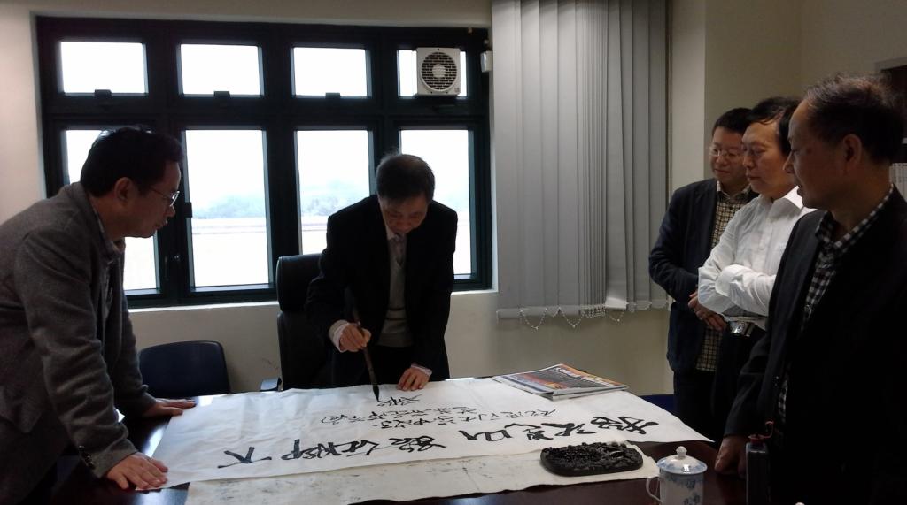 4月3日上午,到澳门大学,座谈之后为澳门大学中文系题词:“抬头是山 路在脚下 祝澳门大学中文系芝麻开花节节高”,接着,作了《论实互动 事实终判》的学术讲演。听众甚多,有博士生、硕士生和本科生,也有不少教授、副教授,其中几位教授是留学归来的著名学者。讲座之后,参观澳大新校区。新校区的建筑融合了东西方风格,很有气派。