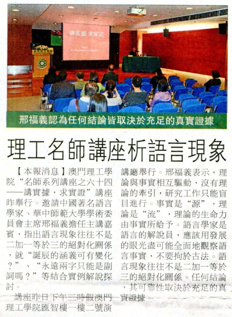 • 邢福义先生赴澳门讲学(2014-04-08 14:18:25)